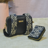 Black Dual Compartment Sling Bag with Black Diamond Belt + Mini Wallet Combo