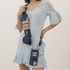 Blue with Multi-color Triangles Cloth on Pocket Pochette Belt with Phone Case
