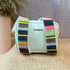 White Dual Compartment Sling Bag with Multi-color Lines Belt
